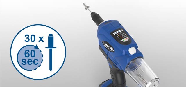 - mit einem reinen Setzprozess von unter einer Sekunde ist eine Verarbeitung von 30 Blindniete in 60 Sekunden realisierbar