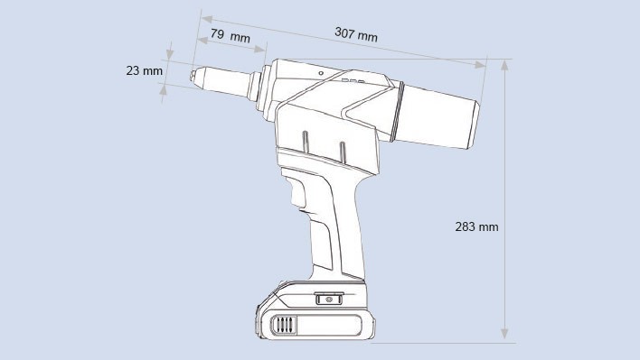 Mit 20.000 N Setzkraft und einem sehr großen Hub von 30 mm lassen sich neben Standard-Blindniete vor allem hochfesten Ausführungen wie HONSEL FERO-Bulb und FERO-Bolt (oder vergleichbare Produkte) und Presslaschen-Blindniete bis 6,4mm Durchmesser verarbeiten.